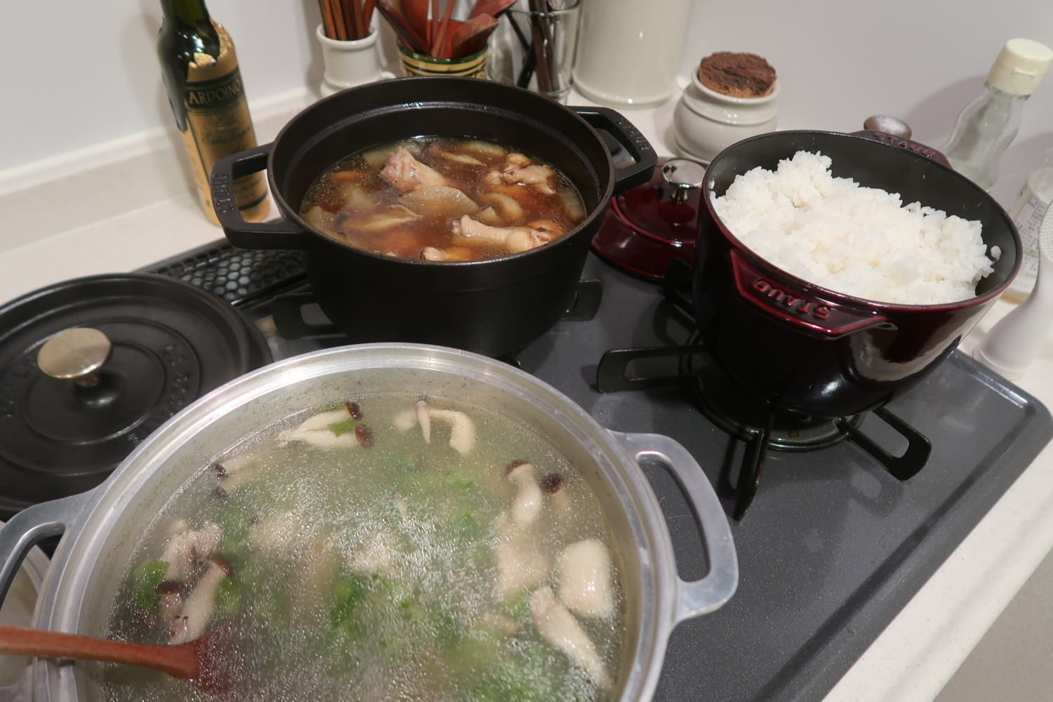 奥のは煮汁が多すぎた手羽元と大根のさっぱり煮